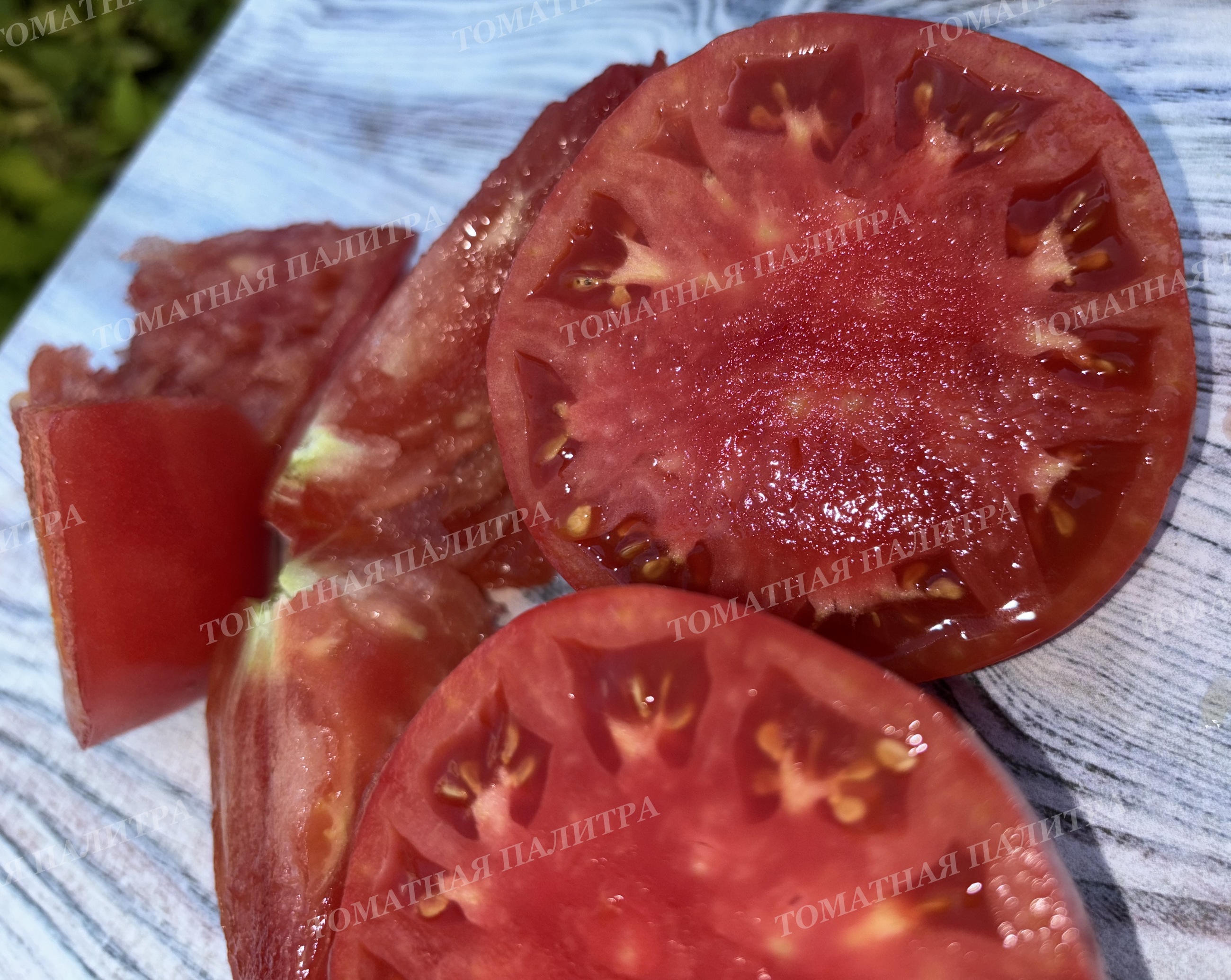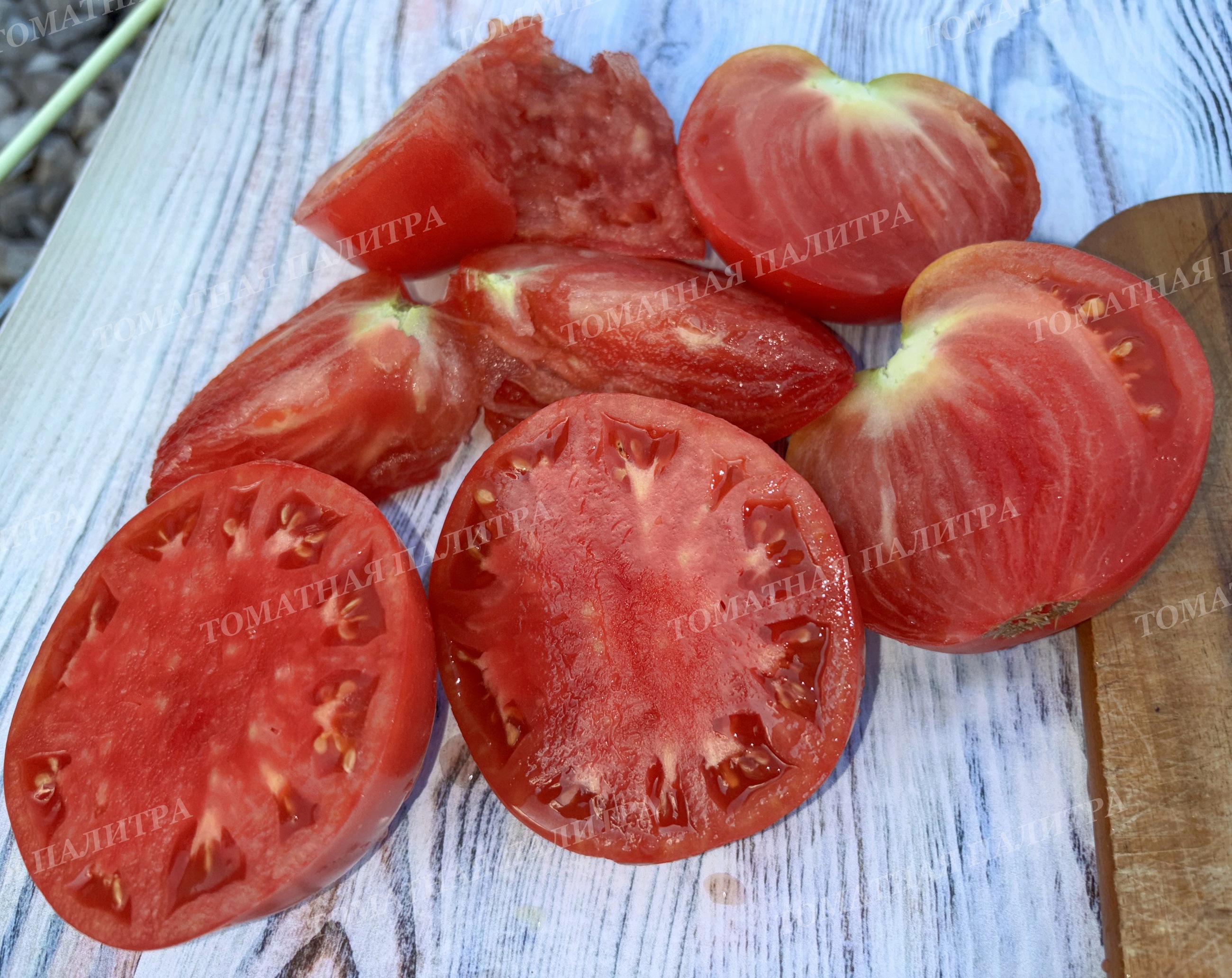 Огромные малиновые помидоры сердцевидной формы. Очень сладкие! Мясистые и ароматные.