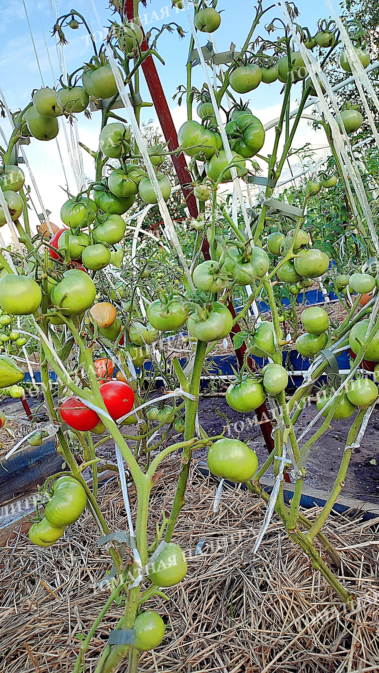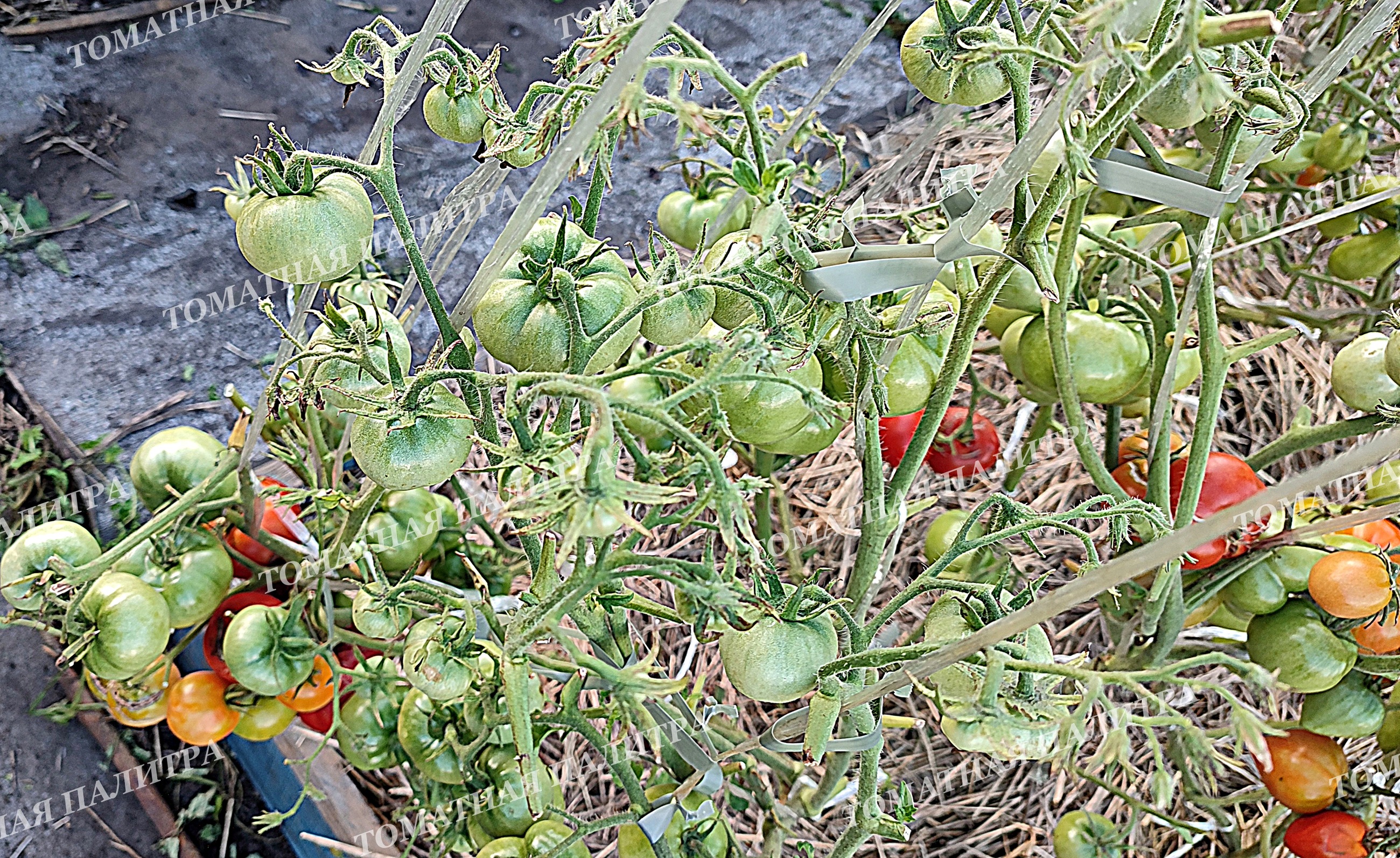 Детерминантный куст, который желательно подвязать, чтоб под тяжестью урожая не свалился.