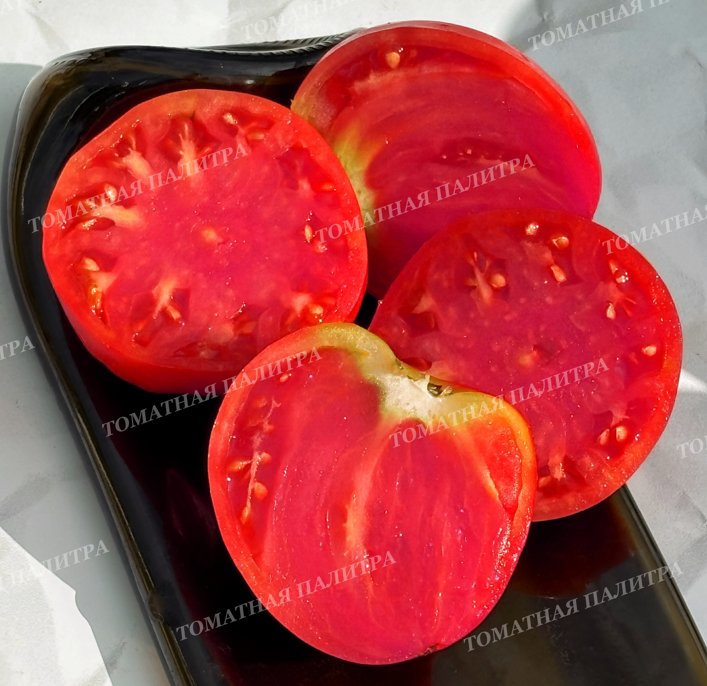 Мякоть маслянистая, густая, сочная с ярким ароматом домашнего помидора…