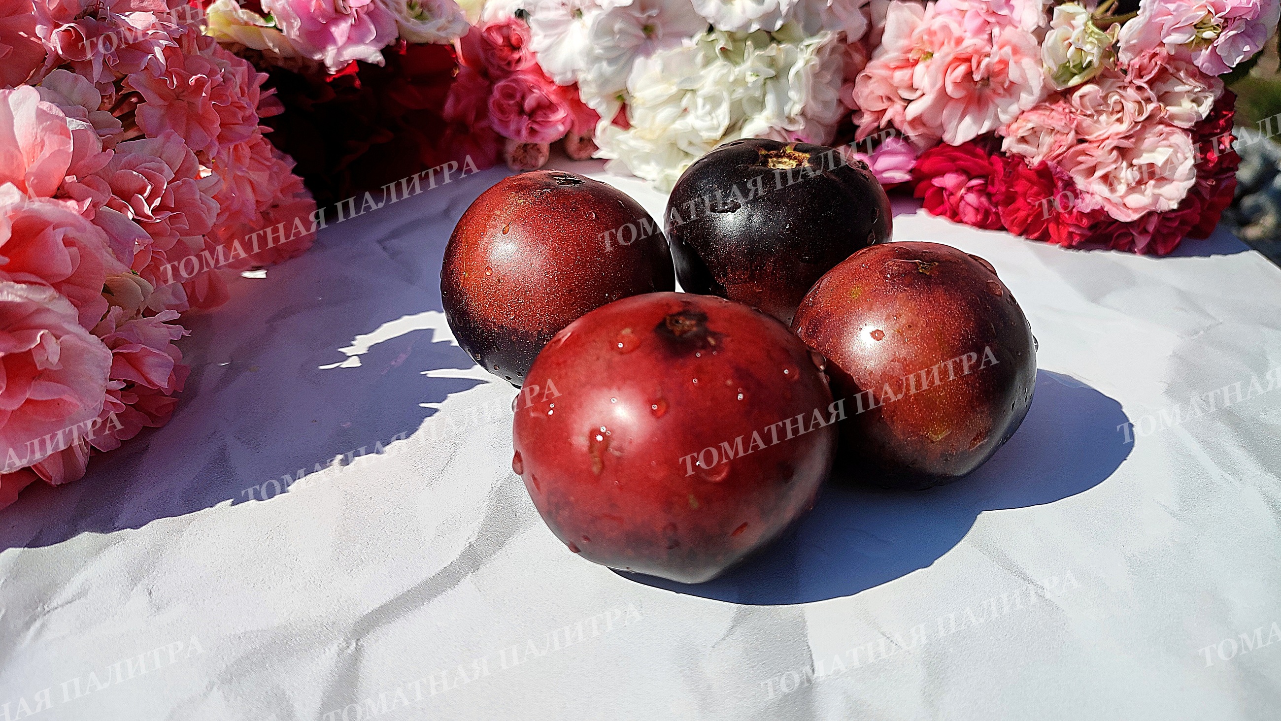ГНОМ ГОНДВАНА ГРОМ – это притягивающие взгляд красно-малиновые с фиолетовым глянцем антоциана плоды весом от 100 до 200 грамм.