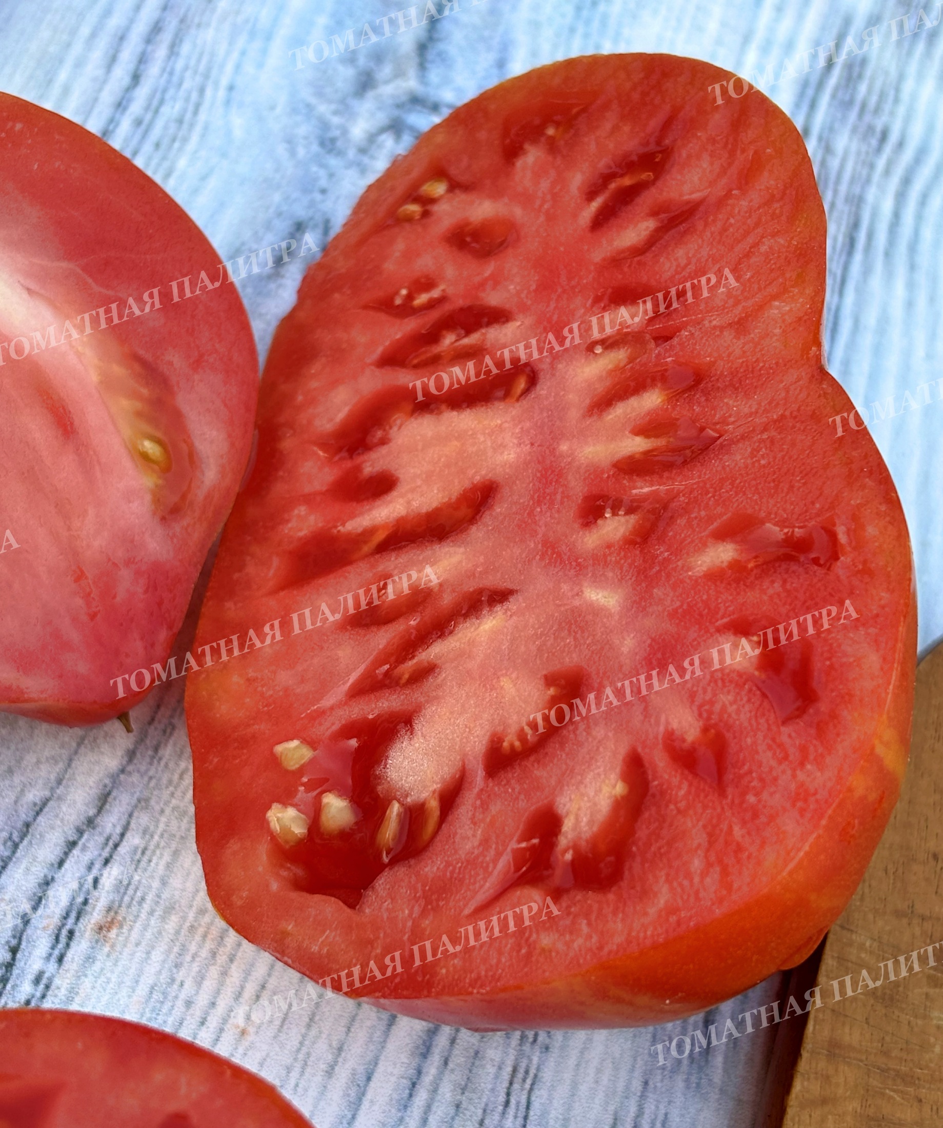 На разрезе – плотное помидорное «мясо» с ярким классическим ароматом. Вкус - выше всех похвал – это прекрасный баланс сладости и томатной кислинки, как у «домашнего помидора»