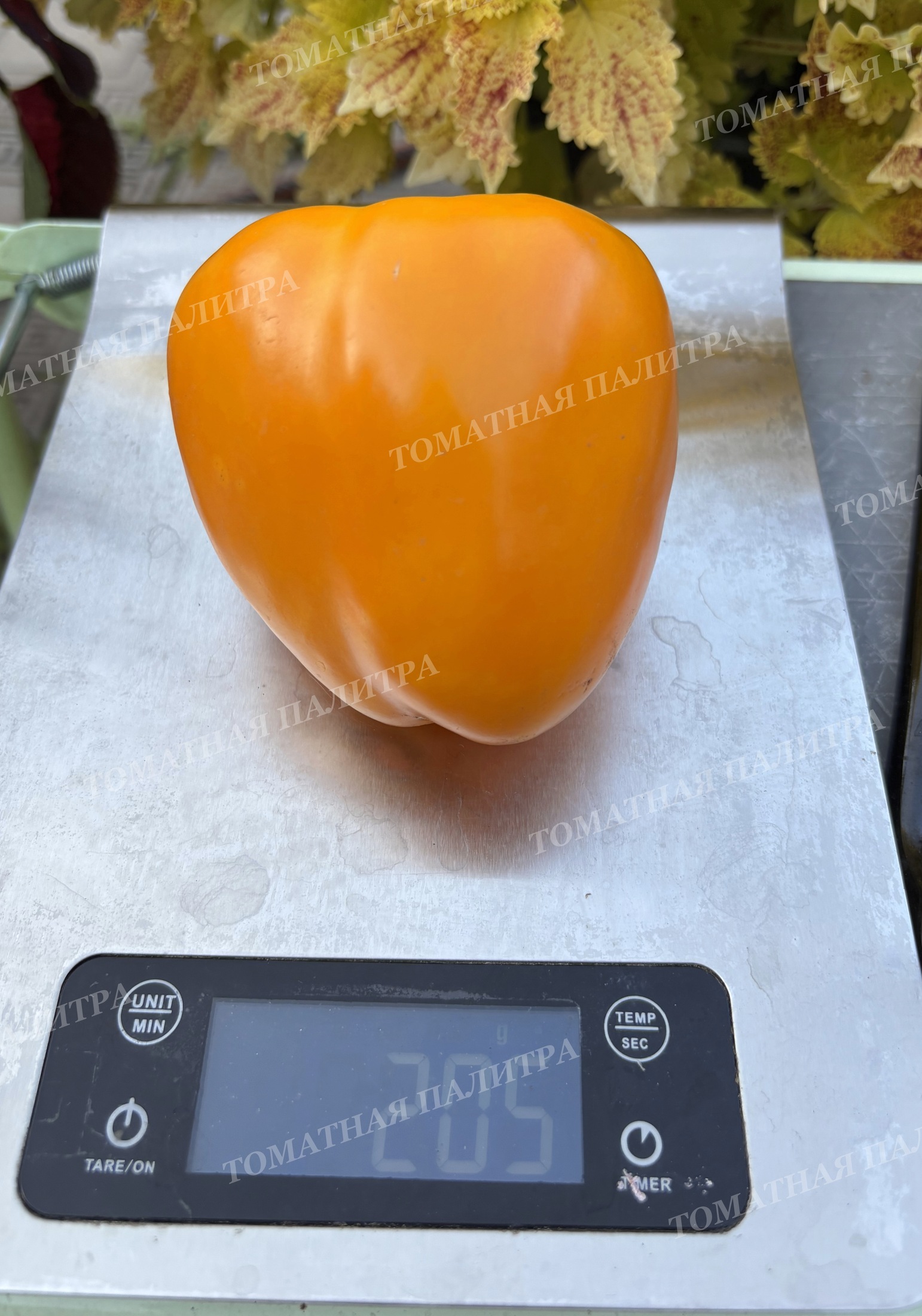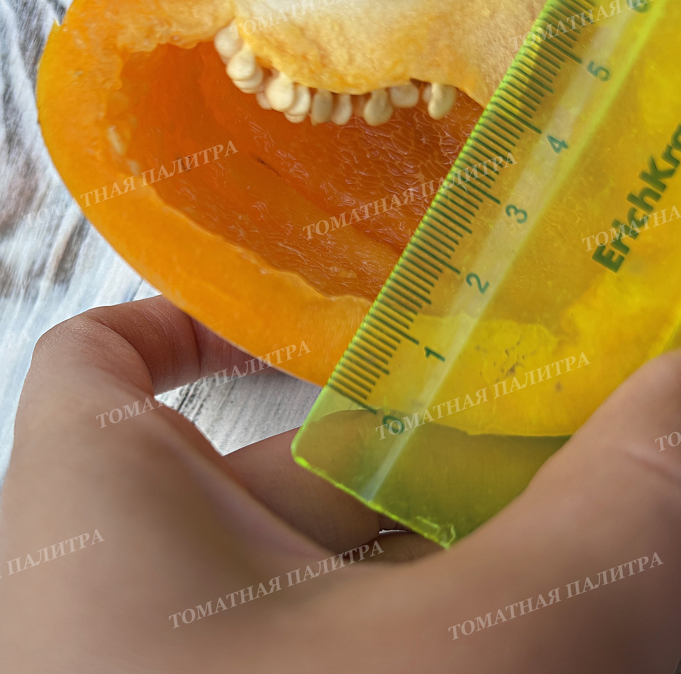 Плод самого насыщенного солнечного цвета, томатовидной формы и самыми толстыми стенками, какие только можно себе представить – более 1 см., и супер сочные и мясистые!