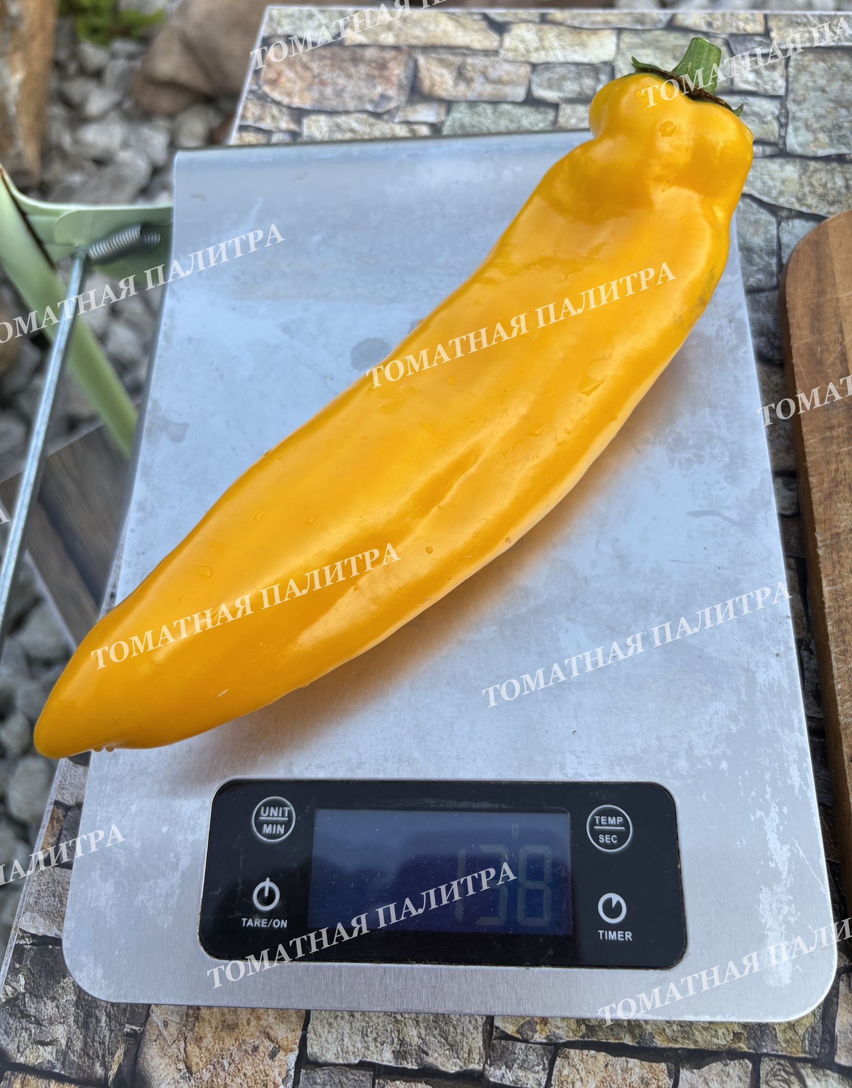 Сами перчины – хоботовидные, похожи по форме на сортосерию Рамиро, длиной 20-25 см. Цвета насыщенного желтого, и весом от 120 до 250 гр..