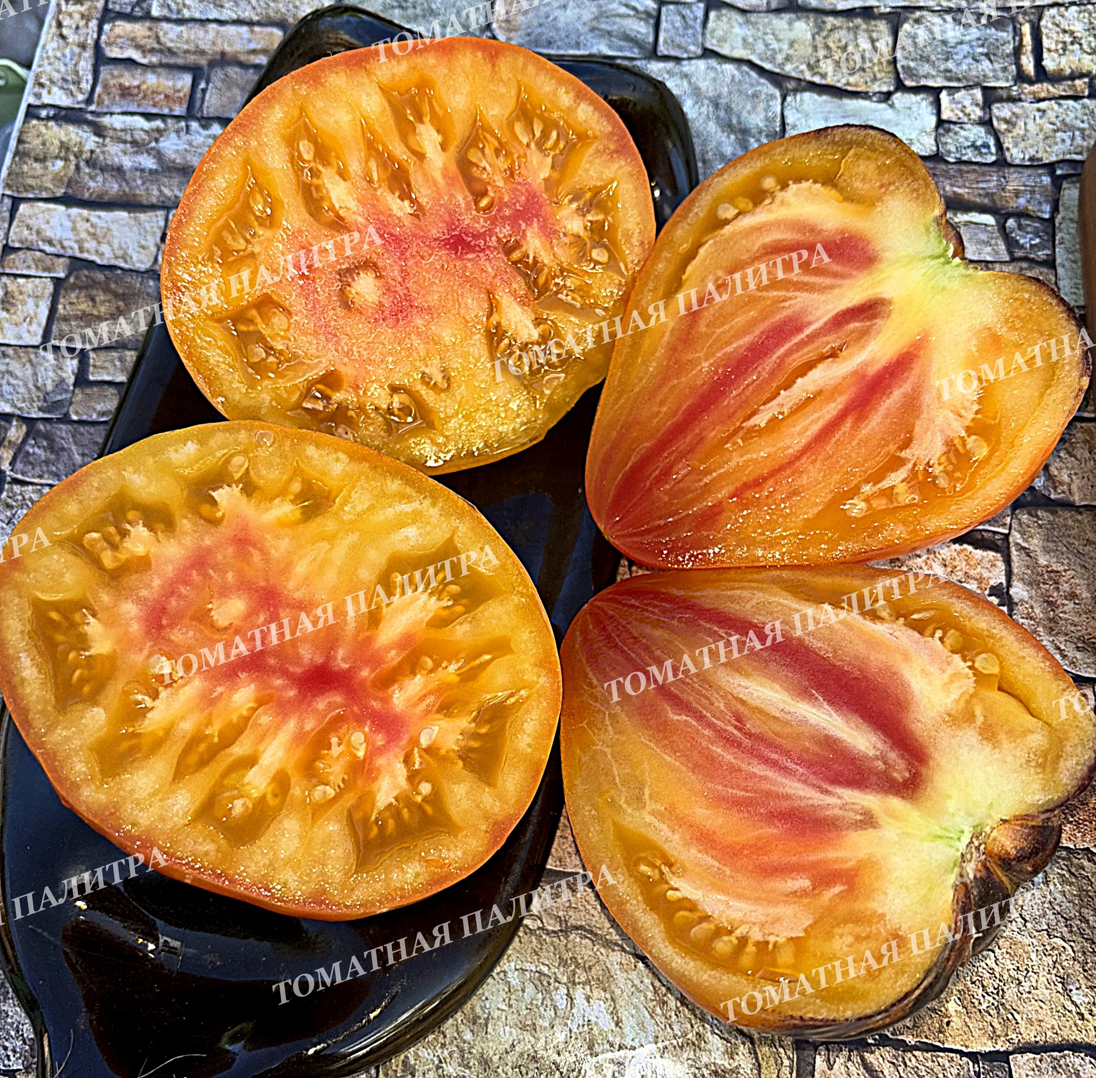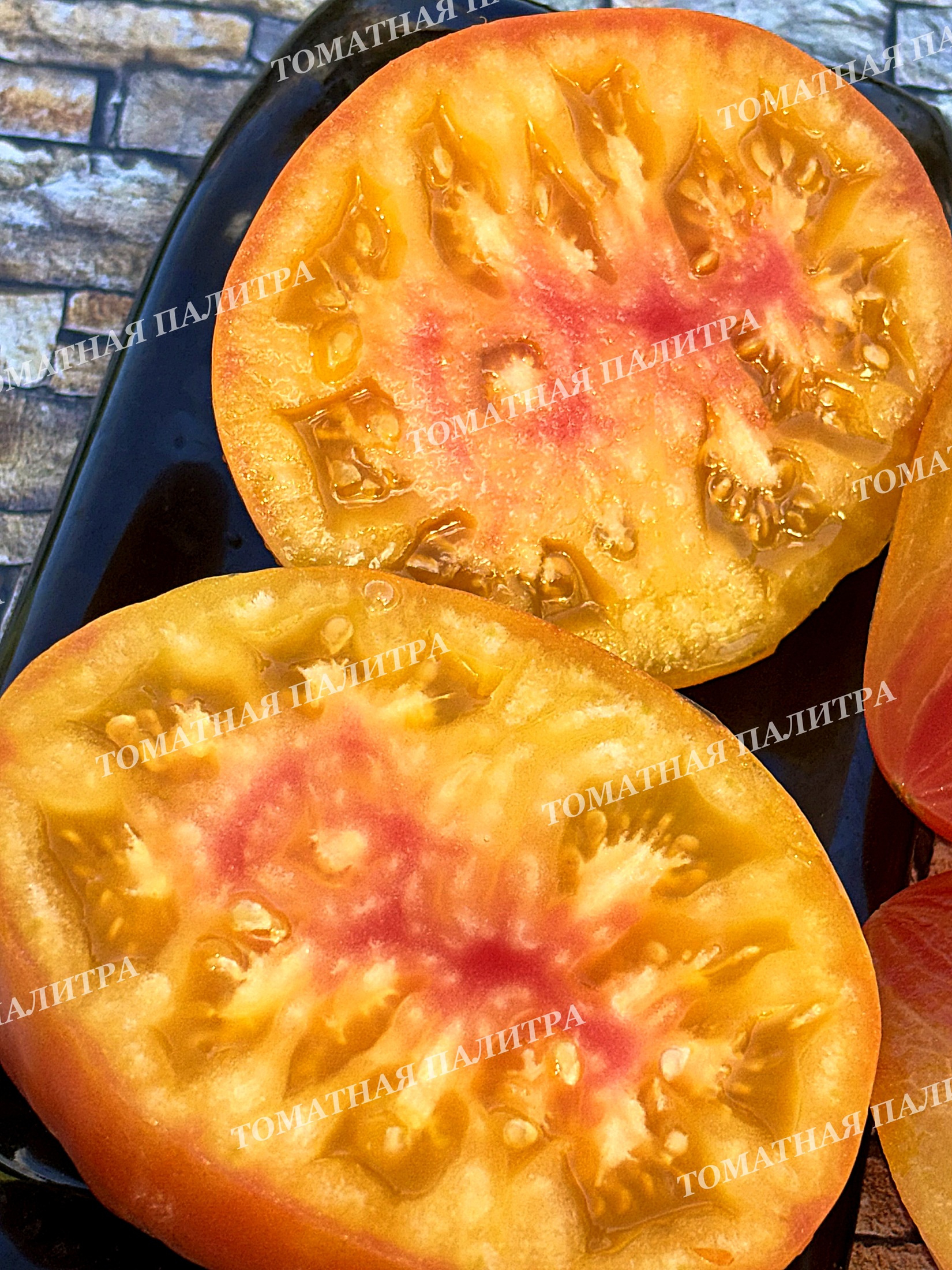 Томат КАРДИНАЛ НА СОЛОМЕ — это крупный и яркий, желто-оранжевый биколор с антоциановым напылением на плечиках. У него мраморная сочная мякоть, маслянистой консистенции с целой палитрой оттенков во вкусе - тут и дынные нотки присутствуют, и фруктовые, и кислинки цитрусовой в меру. Но сладости, конечно же, – больше!