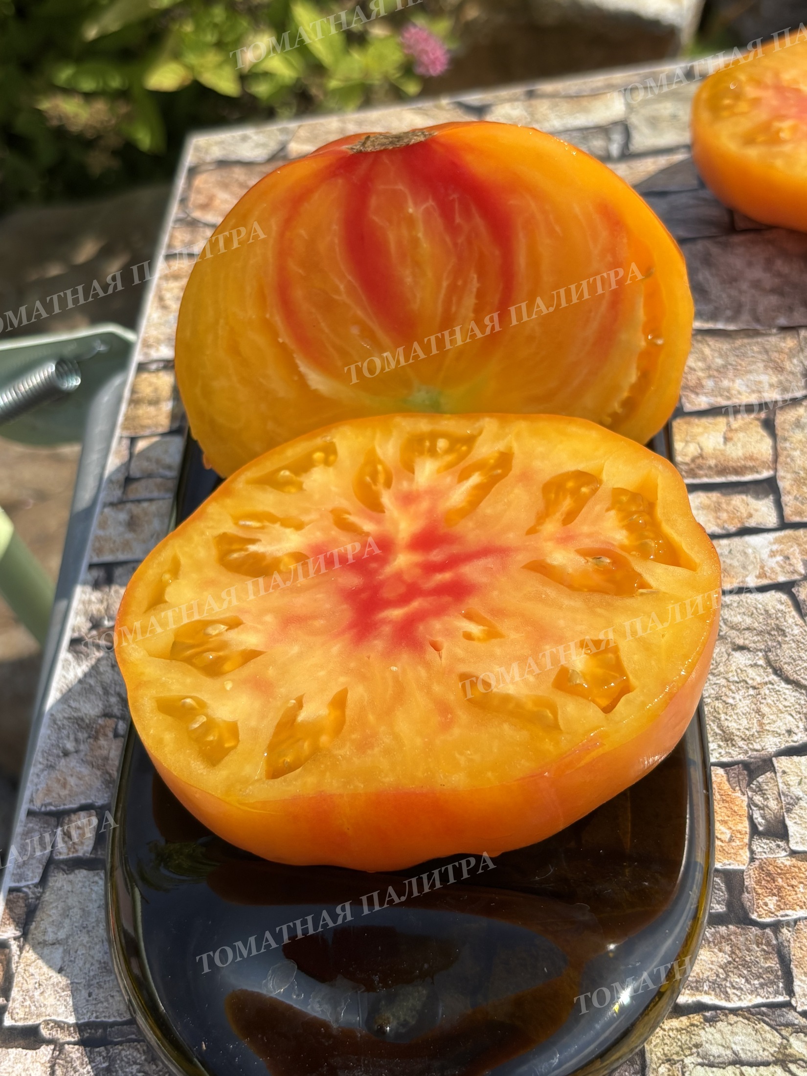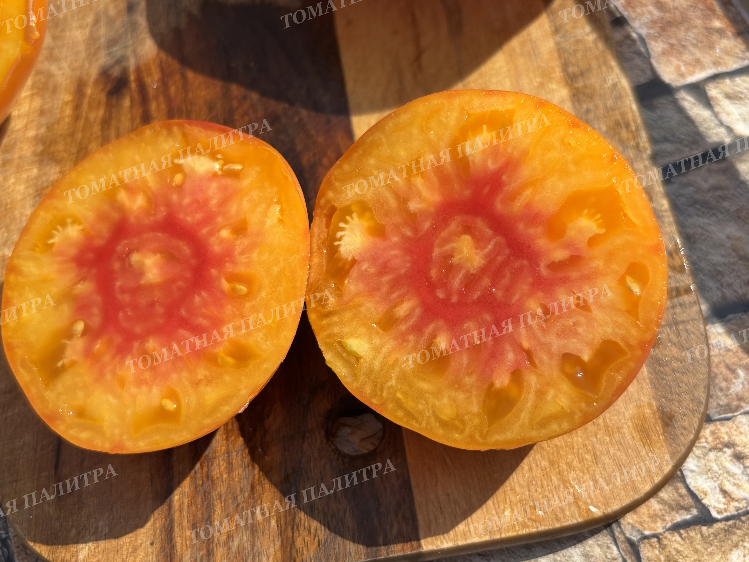 Мякоть очень красивая на разрезе - жёлто-розовая, нежная, ароматная.