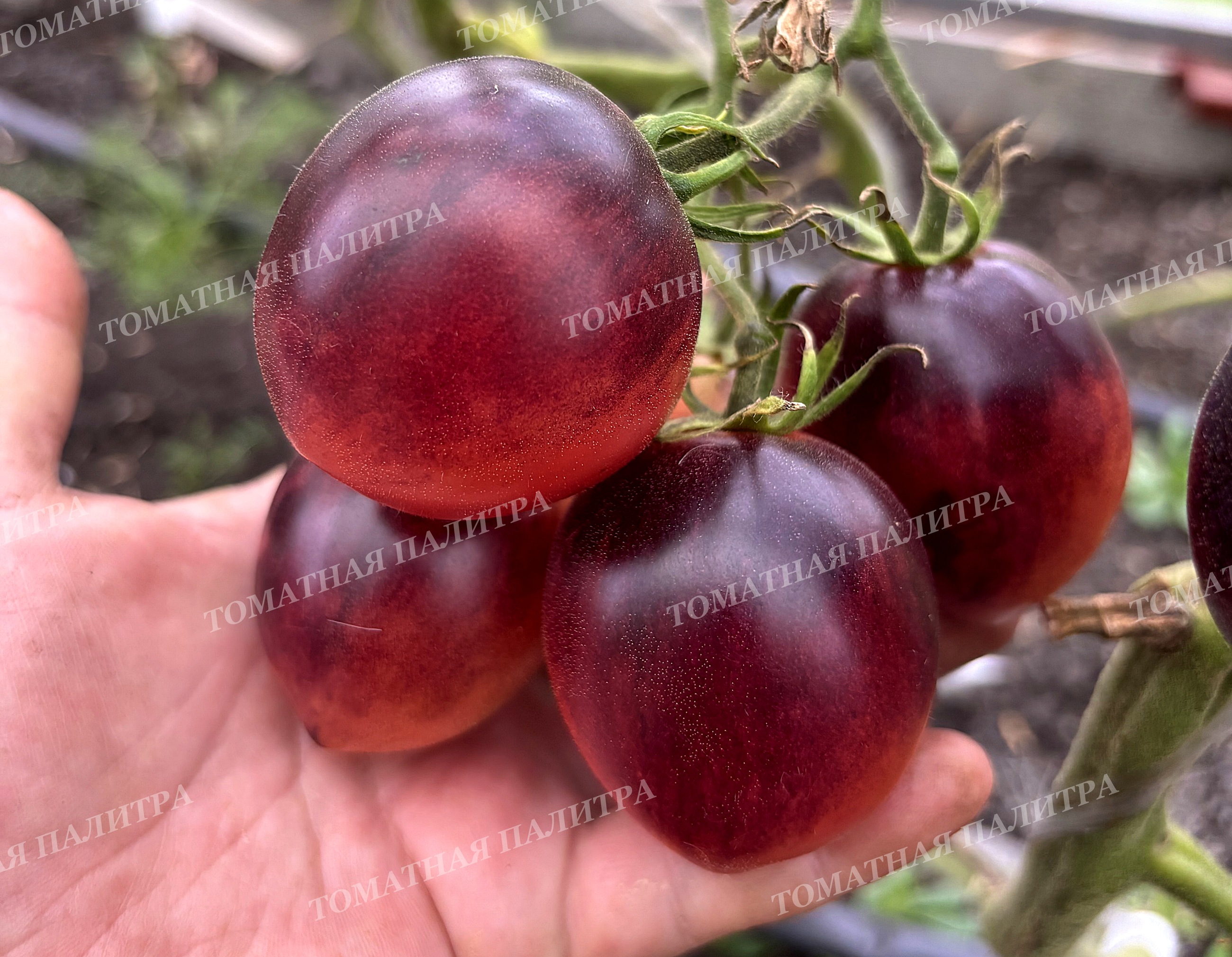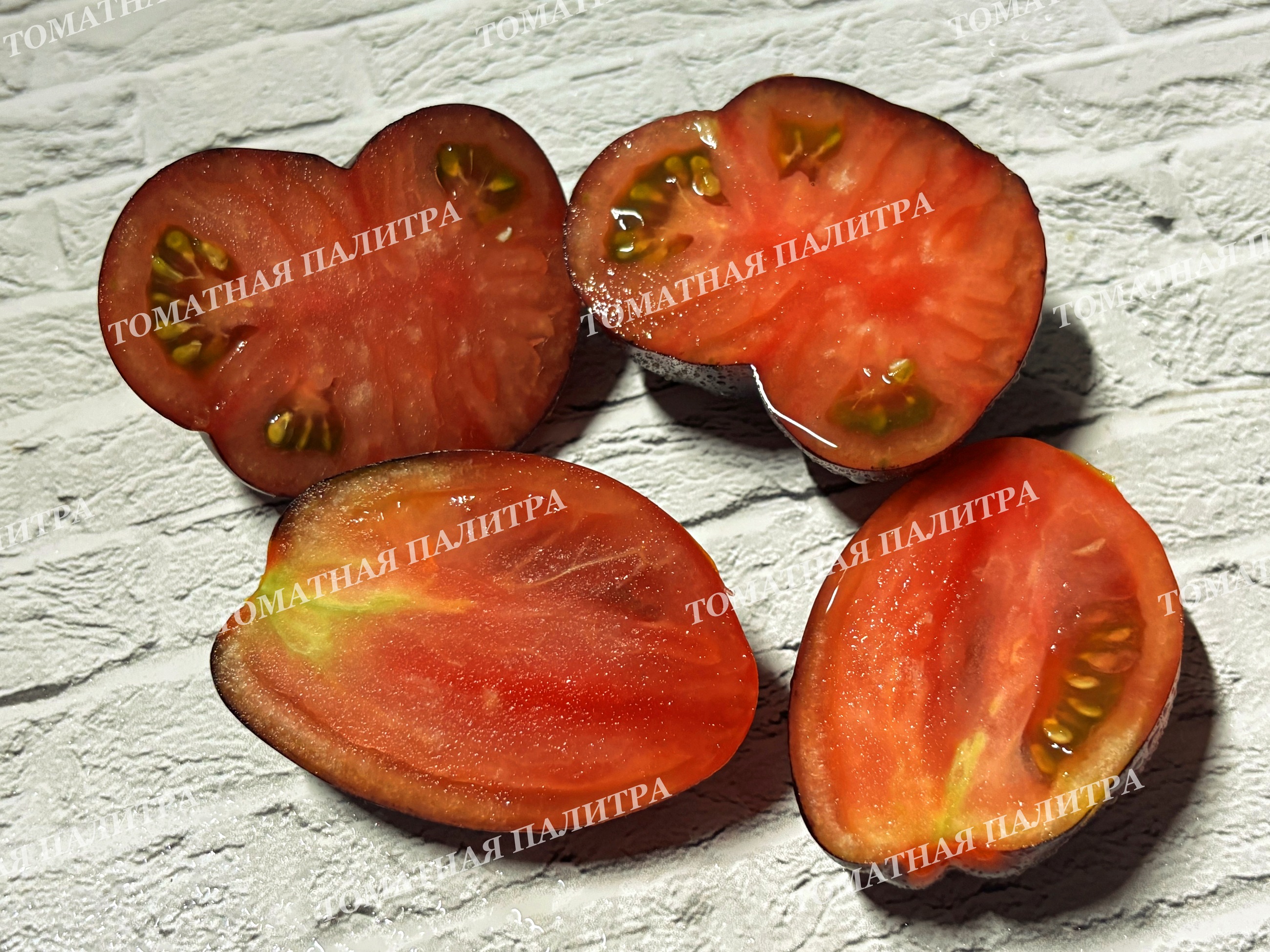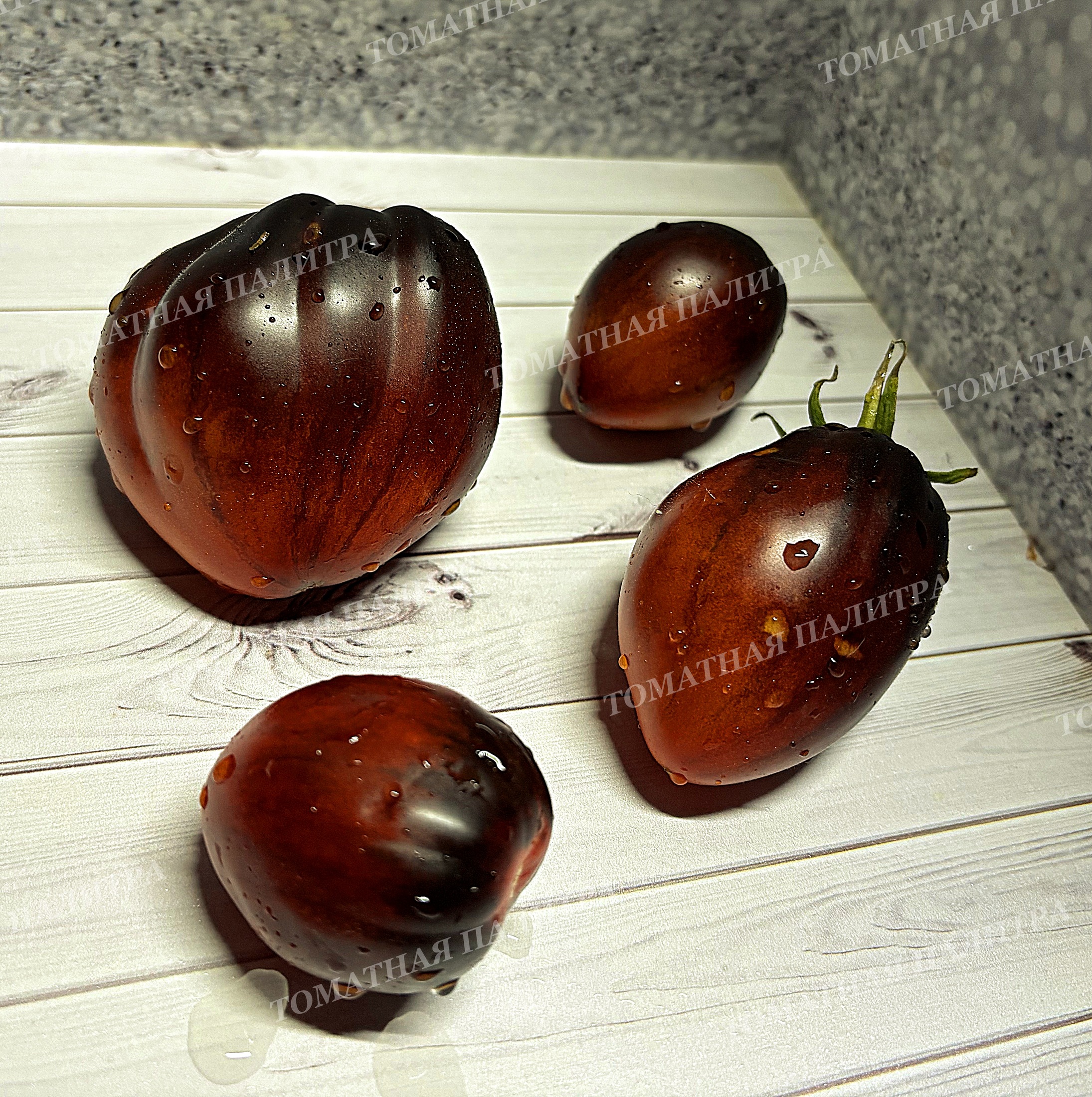 По цвету эти томаты насыщены красно-бронзовым оттенком, и чем больше солнца, тем больше будет эффектного фиолетово-чёрного антоцианового напыления.