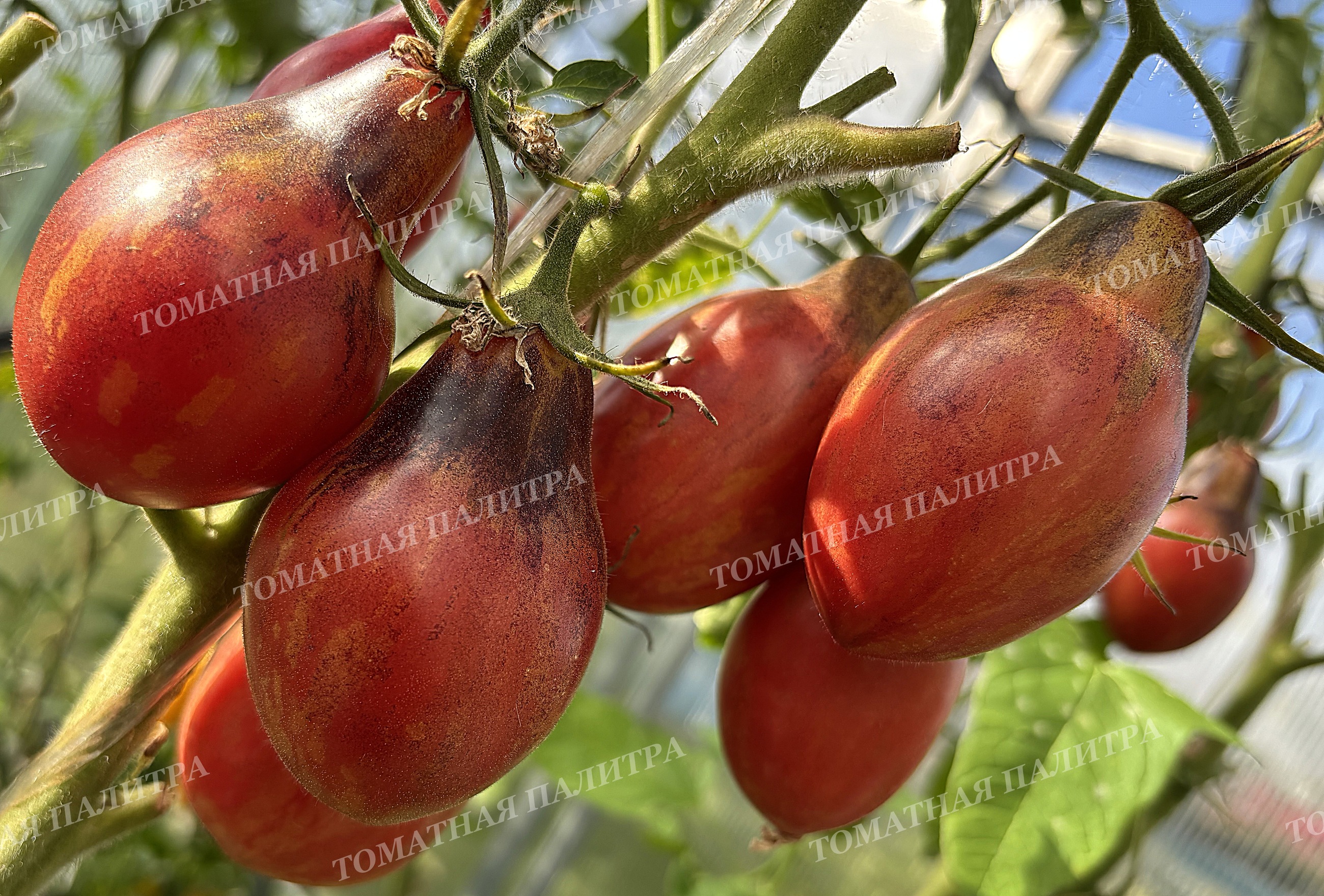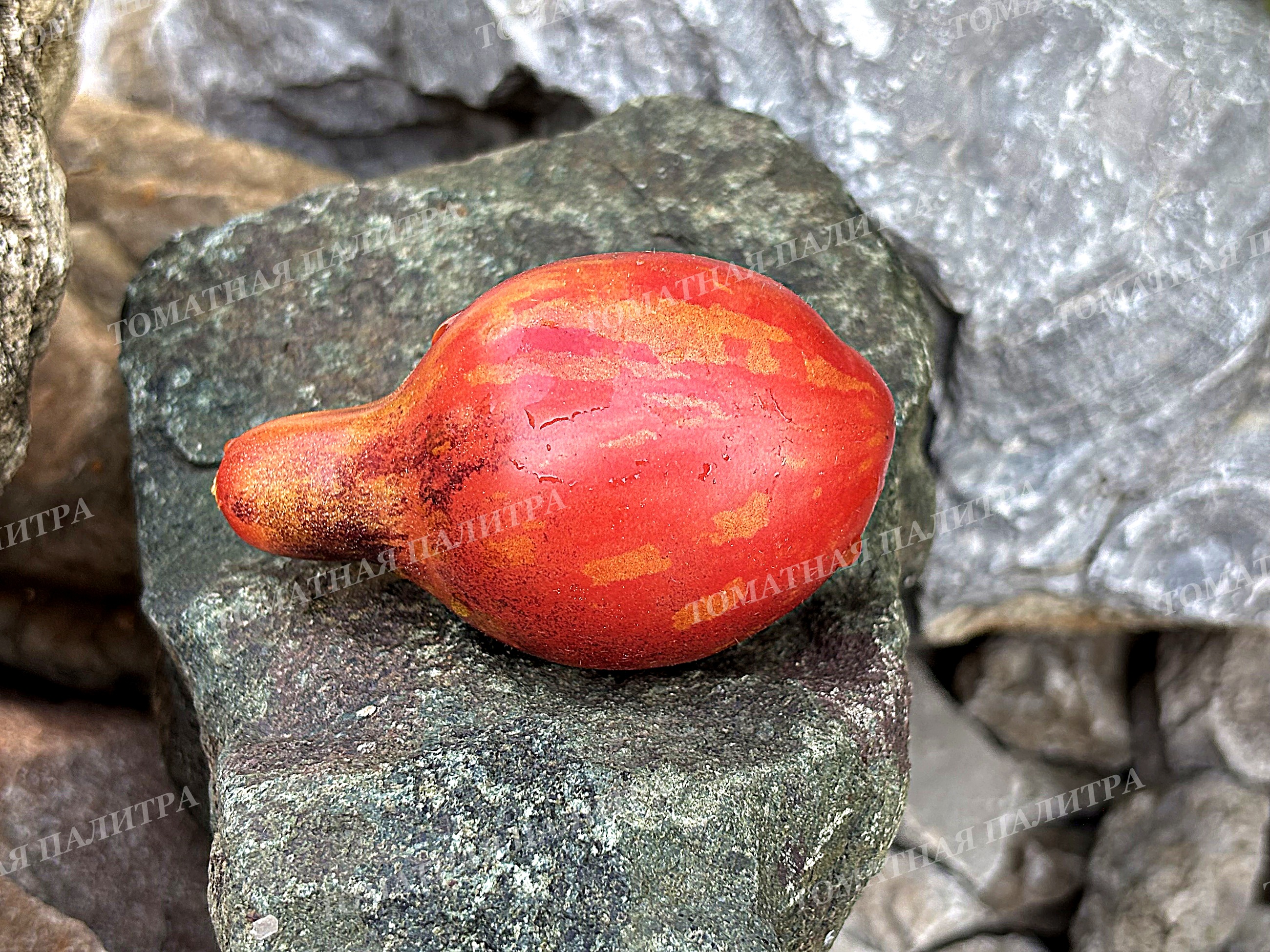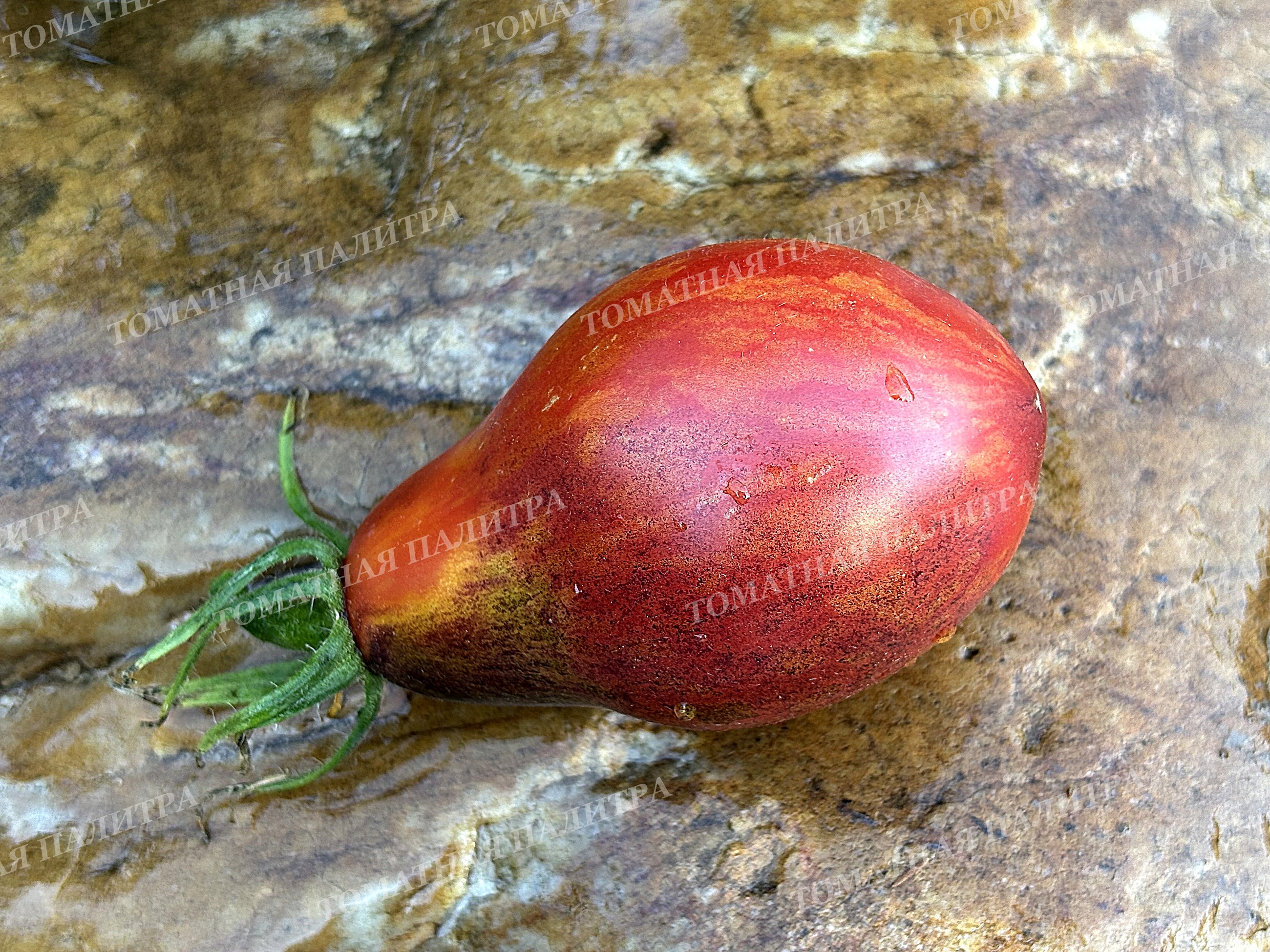 У них забавная грушевидная форма и весьма необычный окрас! По красно-малиновому фону бегут оранжевые полоски с золотым напылением, а плечики припорошены россыпью антоциана.