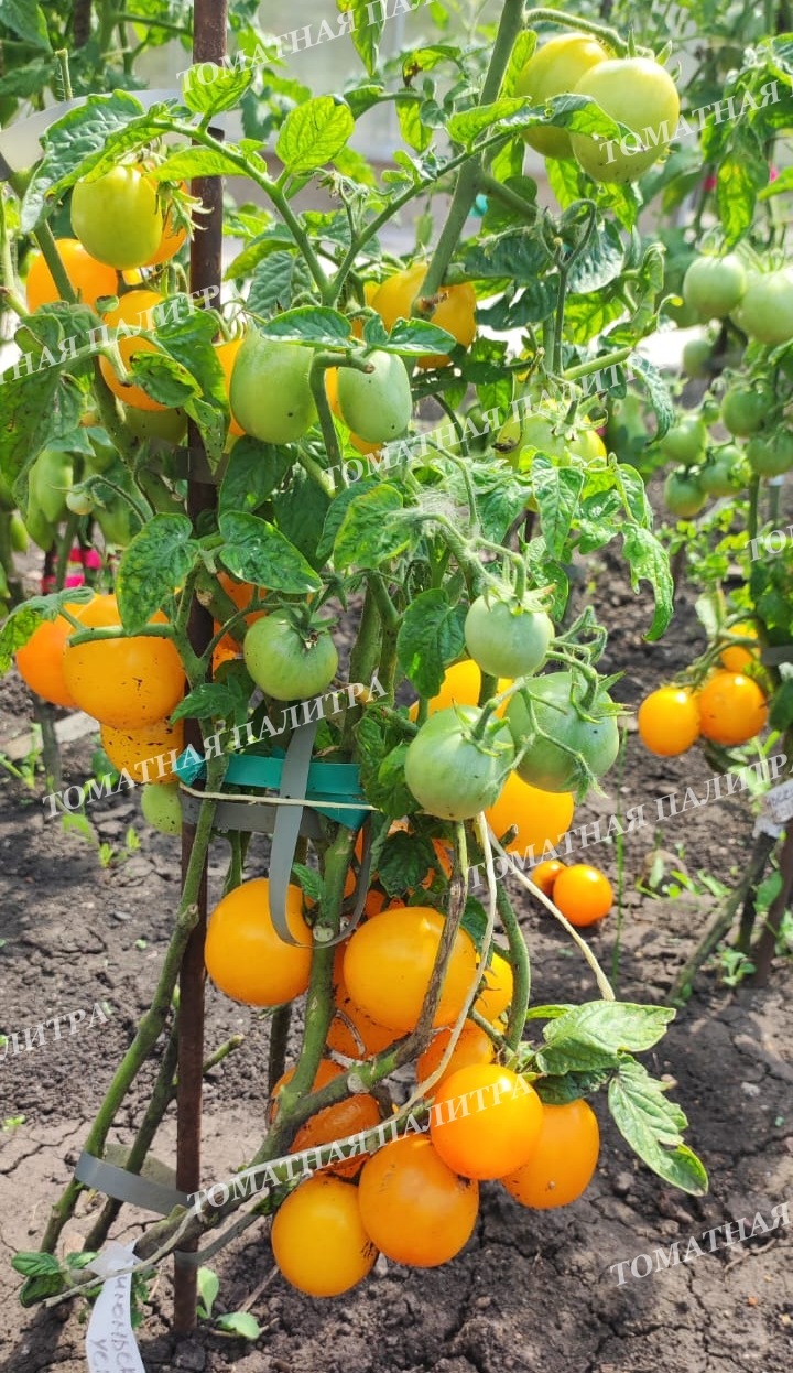 Этими ровными желтыми шариками весом 50-130 гр. куст просто усыпан! Причем, не важно, какое лето. Этот сорт вяжет и в дождливое, и в жаркое! Отдаст все до последней помидорки в зрелом виде до прихода всевозможных томатных болезней, причем – в открытом грунте.